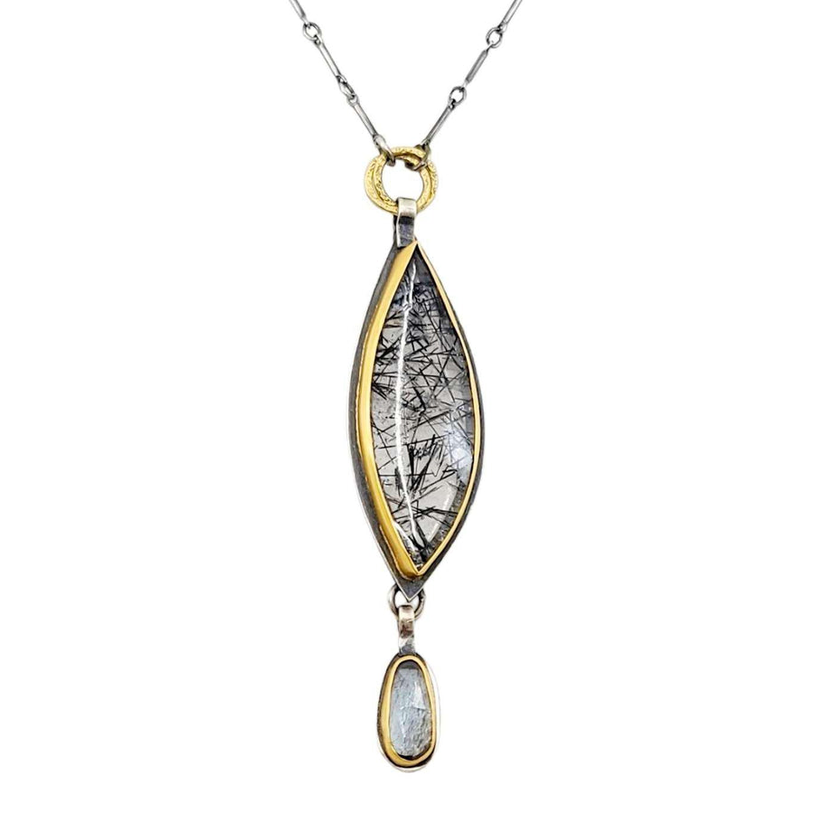 AKN610 $1120 - Rutilated Quartz Aquamarine OOAK Pendant Necklace