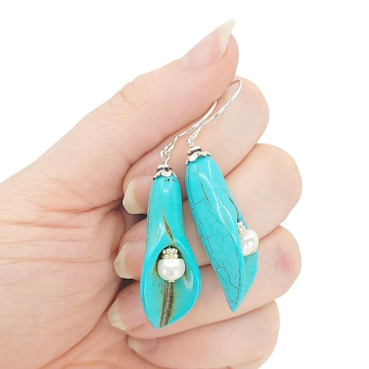 Earrings - Capped Pearl Peace Lily Drops (Freshwater Pearl, Howlite, Sterling Silver) by Tiny Aloha