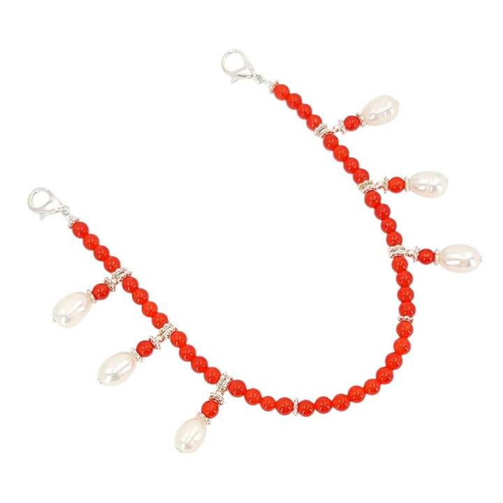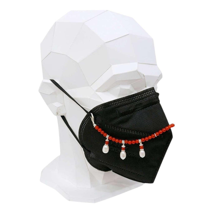 Mask Chain - Pearl Drop Bead Chain (Red Jade, Freshwater Pearl) by Tiny Aloha