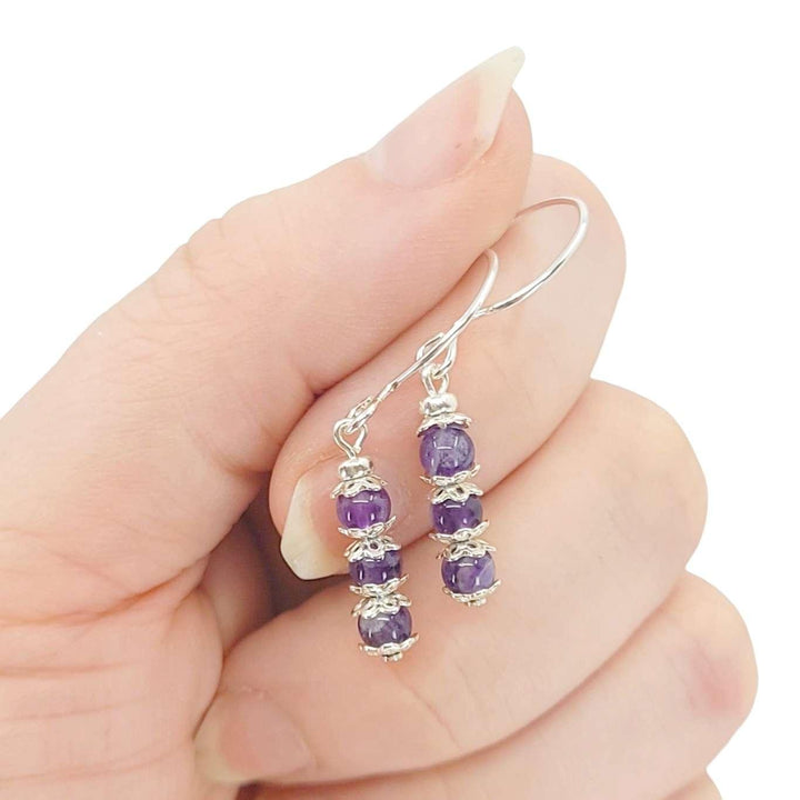 Earrings - Dainty Triple Stone Bead Drops (Amethyst, Sterling Silver) by Tiny Aloha