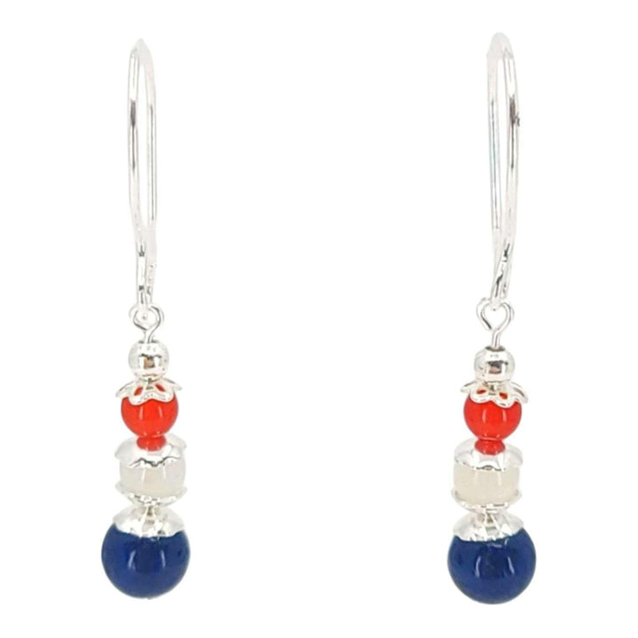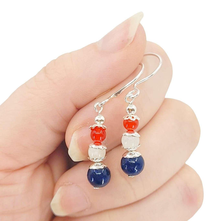 Earrings - Triple Stone Stacked Bead Drops (Lapis Lazuli, Rainbow Moonstone, Red Jade, Sterling Silver) by Tiny Aloha