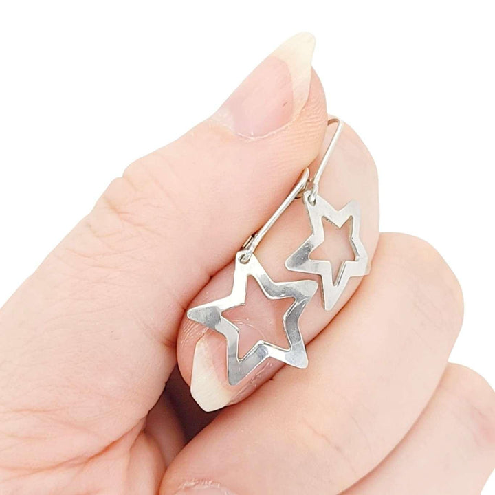 Earrings - Medium Cutout Star Drops (Sterling Silver) by imakecutestuff