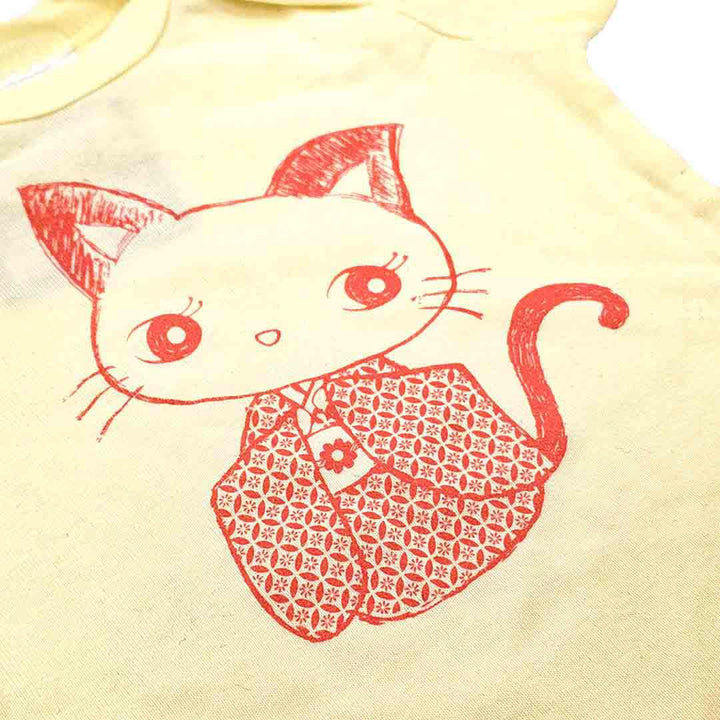 Onesie - Kimono Kitty Red on Yellow by Namu