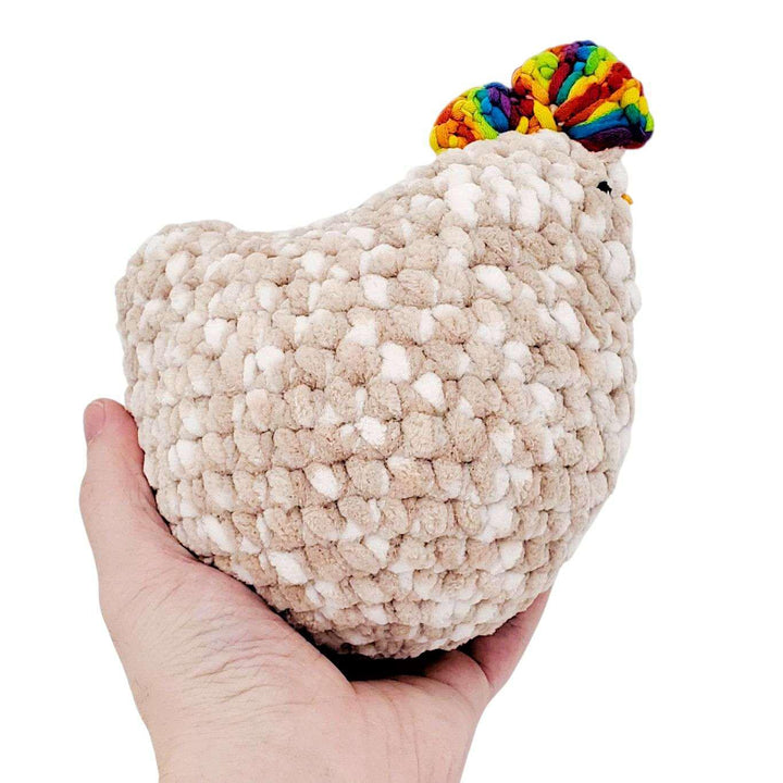 Plush Toy - Medium Tan Chicken (Green Heart Rainbow Comb) by Moyo Workshop