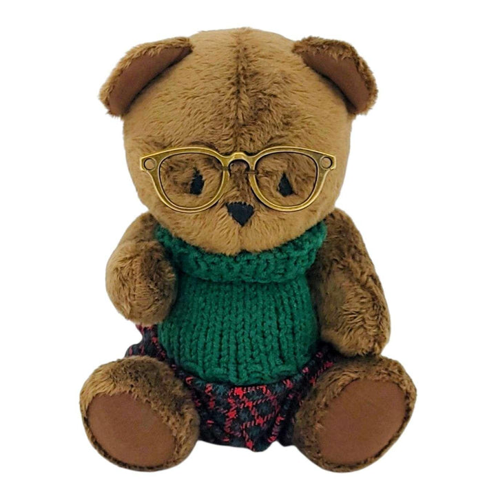 Plush - Brown Bear in Glasses and Sweater (Green) by Frank and Bubby