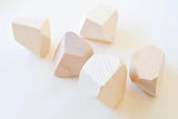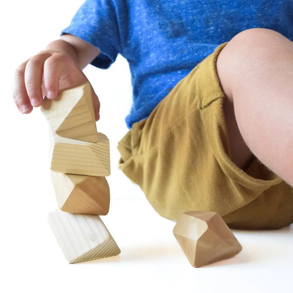 This 5-piece block set consists of two different wood species: Alder and Birch, two of the most sustainable and accessible woods the US has to offer. Rock Blocks are the perfect stacking toy for kids who to build and balance towers, arches, mountains, and other shapes.