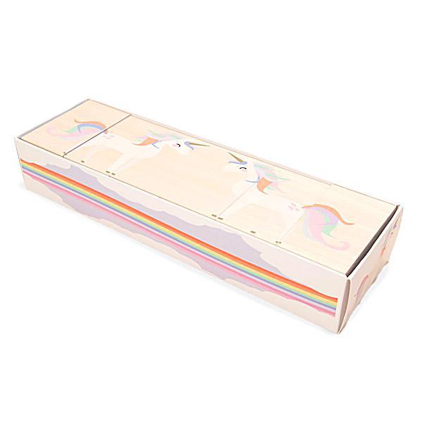 Bring fairy tales to life! Count clouds from 1-6. Puzzle together all six blocks to create a fantasy castle. Turn the blocks around to discover two unicorns. Form a colorful rainbow with fluffy clouds. With multiple ways to play, the adventure never ends. Let your imagination soar!
