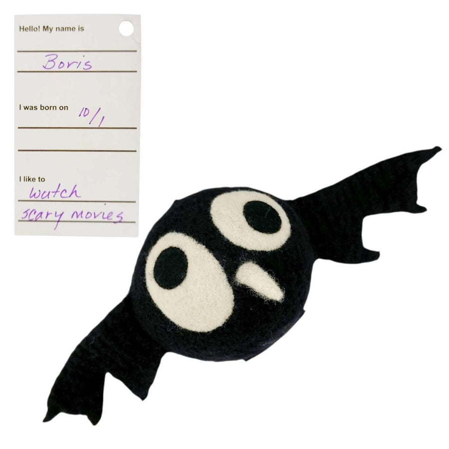 Take home your new mini bat friend created by Mama Snooter of Snooter-doots! Hand-knit to about 3x its finished size, Mama puts the 100% wool form into a hot soapy washer to shrink and "felt" the knit fabric down to just the right size then stuffs it firmly with new fiberfill. Final details and signature 'Doot eyes are added by needle felting, and a Snooter-doot is born!