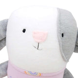 Emma the Bunny is a cutie with soft floppy ears, long soft arms and legs, and a squishy stuffed body with an embroidered face! She’s even wearing a cute little shirt made of upcycled fabric; every plush has a different shirt.