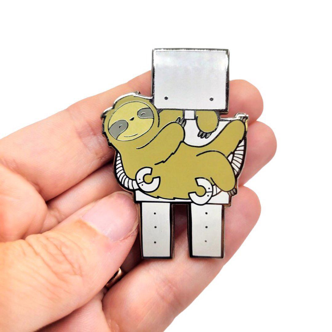 LRE107 $14 - Robot Holding Sloth Enamel Pin