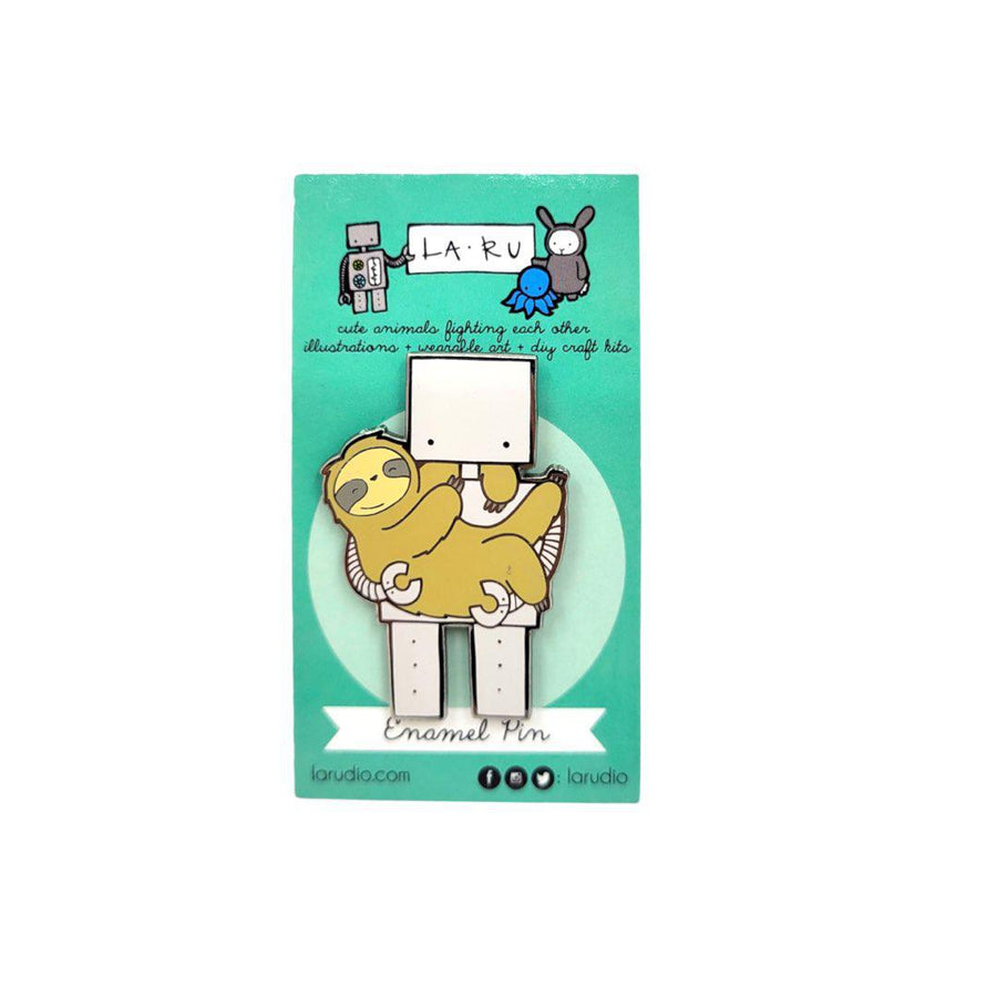 Enamel Pin - Robot Holding Sloth by LaRu