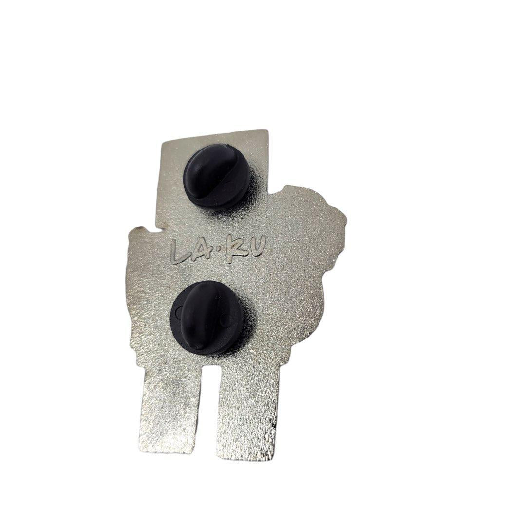 This hard enamel pin measures approximately 1 1/2in W x 2in H.