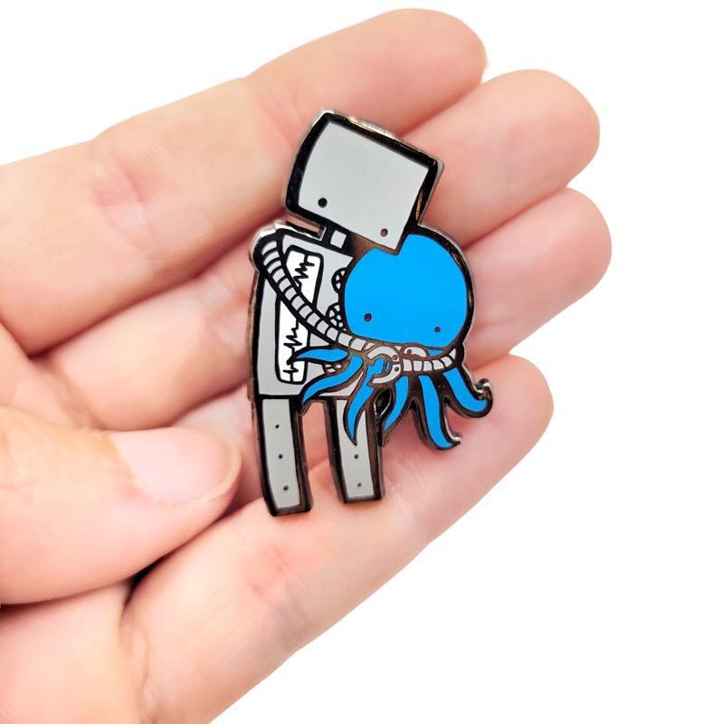 Enamel Pin - Robot Hugging Octopus by LaRu
