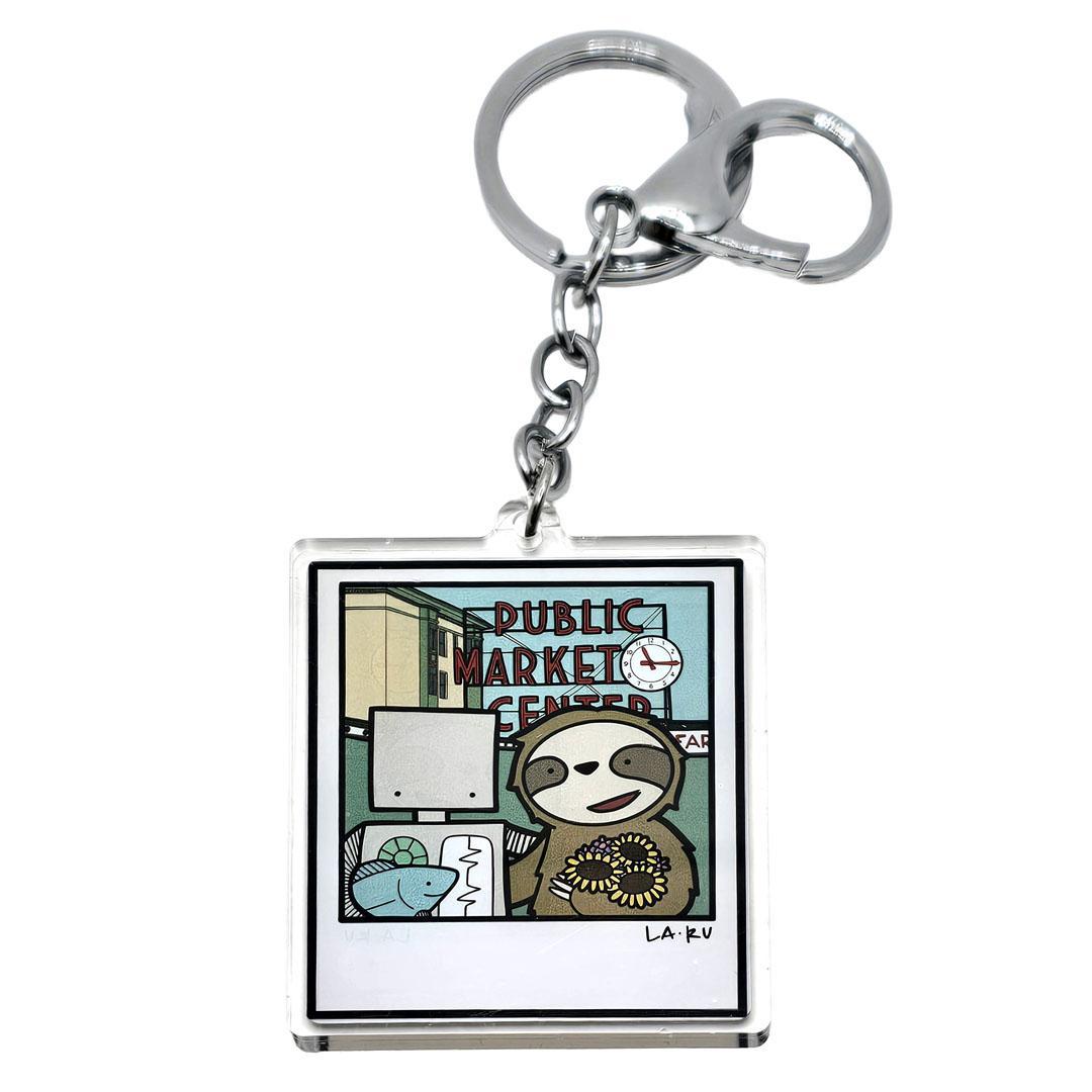 Keychain - Robot and Sloth at Pike Place Market by LaRu