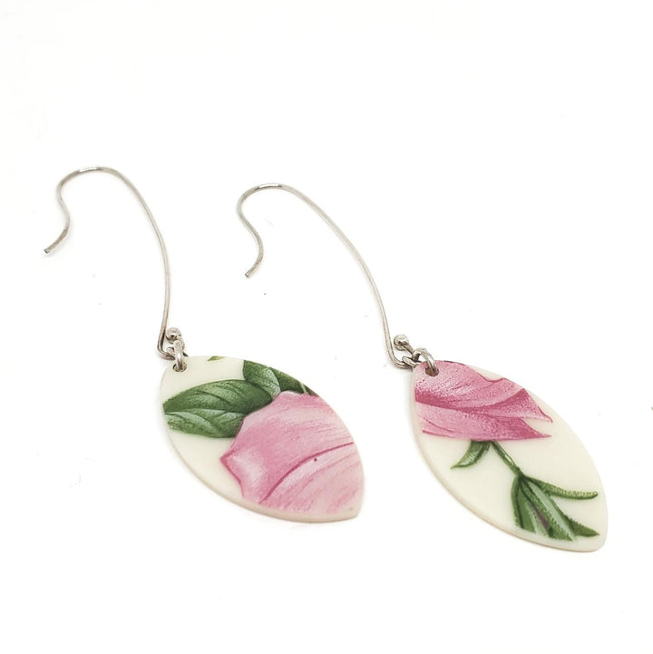 Earrings - Long Pink Floral Vintage China by Material+Movement