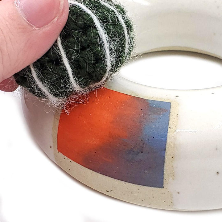 Large Plush Cactus - Echinocactus Grusonii in Orange Blue Donut Pot by Hook And Wheel