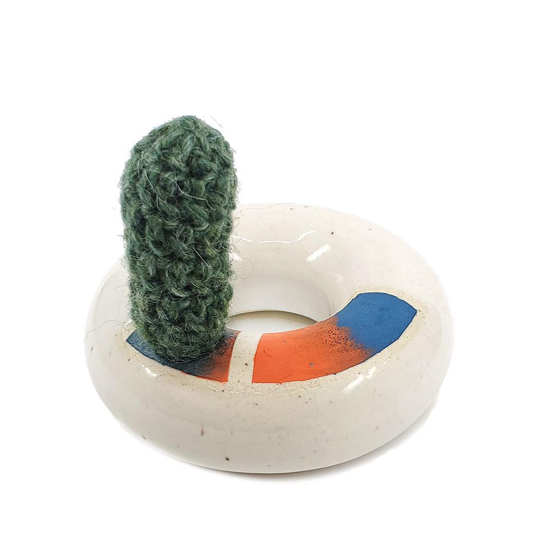 A combination of ceramic and crochet, this sweet little pilosocereus pachycladus (aka Blue Torch Cactus) in a pot is a delightful friend to keep you company. Easy to take care of, it fits well just about anywhere - your desk, windowsill, bedside table, countertop, or bathroom shelf.