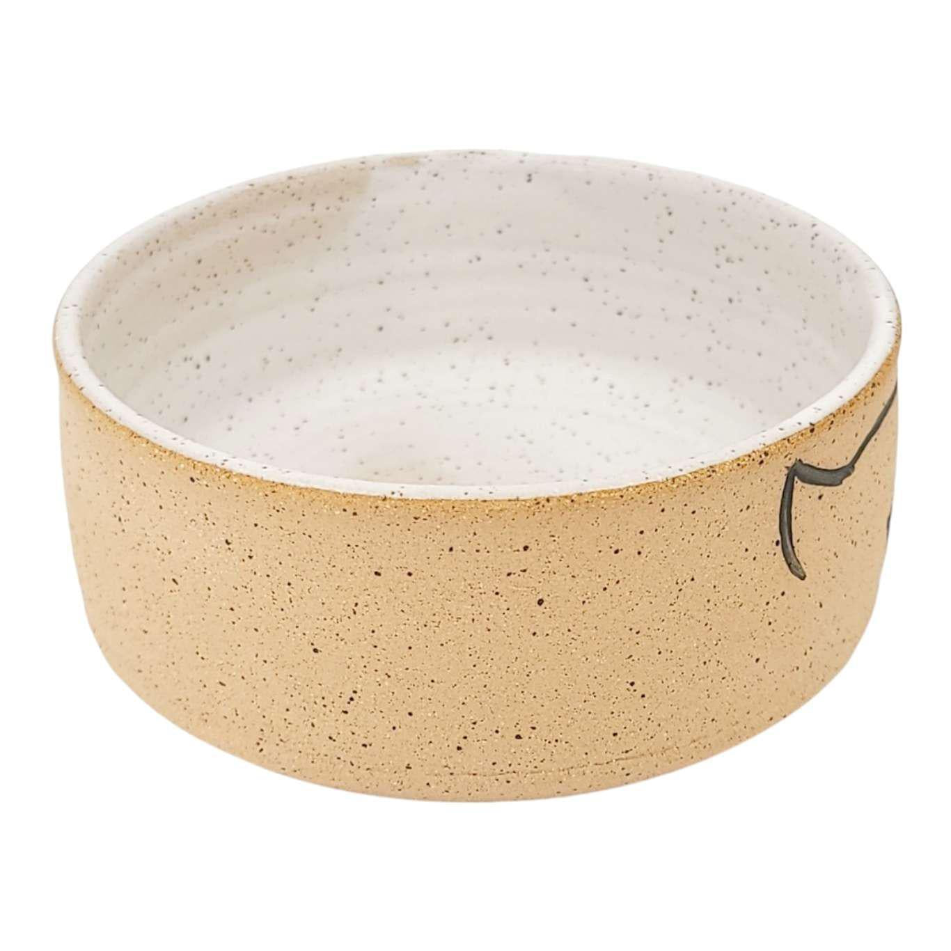 - Ceramic cat bowl with natural speckled exterior