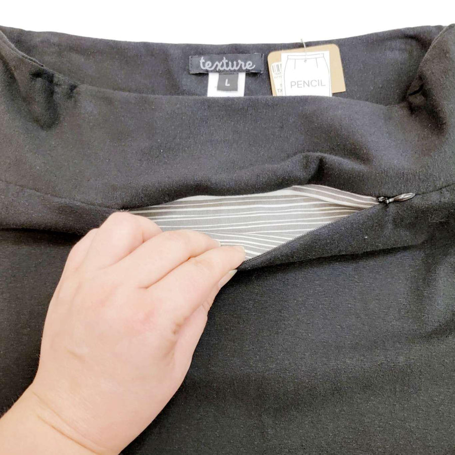 TX73 $78 -Sale $62.40 - Size L - Jet Black Fitted Knee Length Comfy Skirt