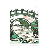 From an original block print, this card features a Fishing under Bridge design with the words 'Happy Fathers Day'.