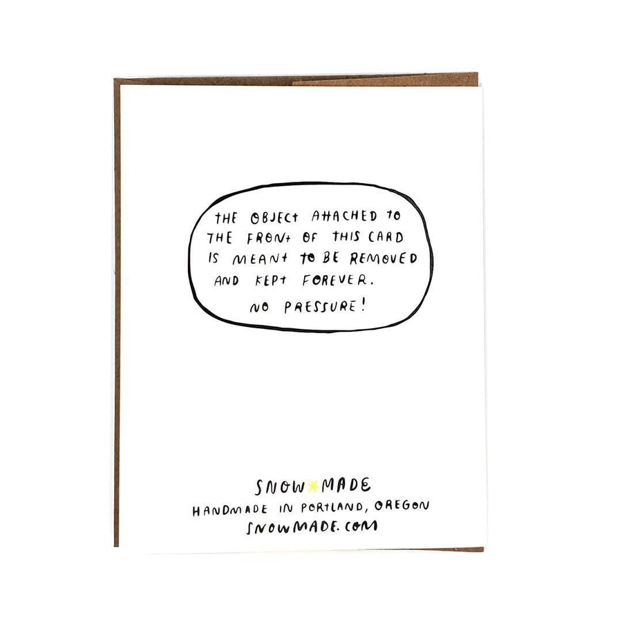 Magnet is made of hand-painted 1/8-inch baltic birch plywood with a rare-earth magnet. Affixed with a removable glue dot to the front of the card, the magnet easily comes off the card.