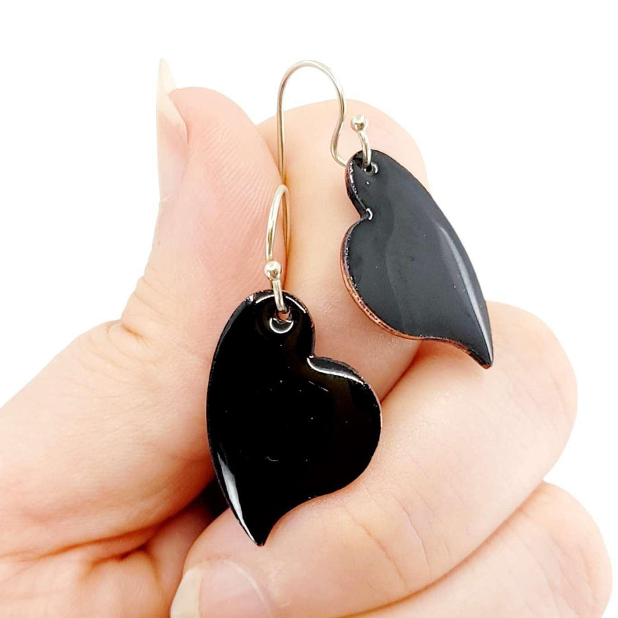Hand-formed copper hearts covered in black glass enamel. Even the backs are finished in a lovely speckled denim color!