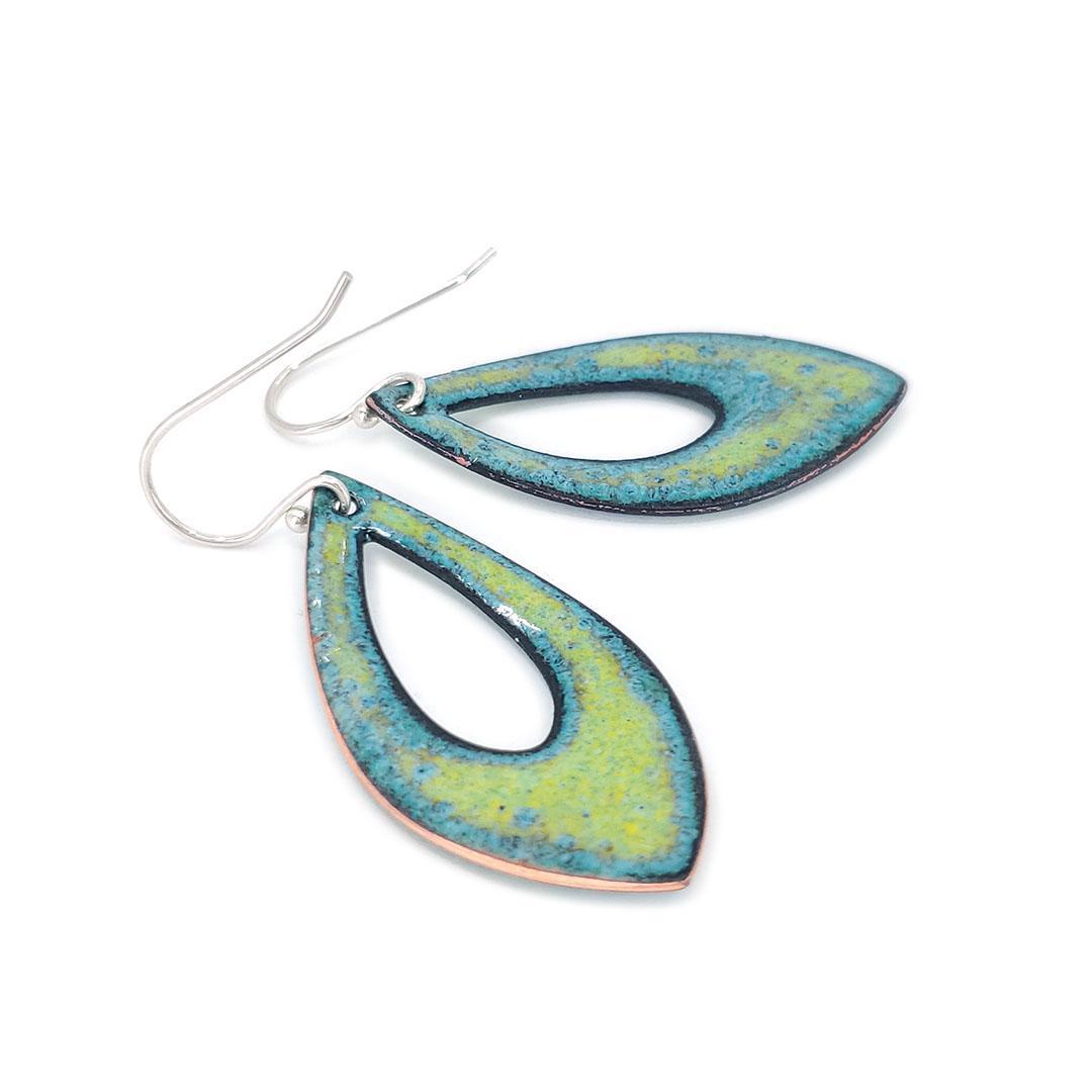 Elegant marquise shapes with cutouts decorated with blue and green enamel - perfect for the Seahawks fan in your life!