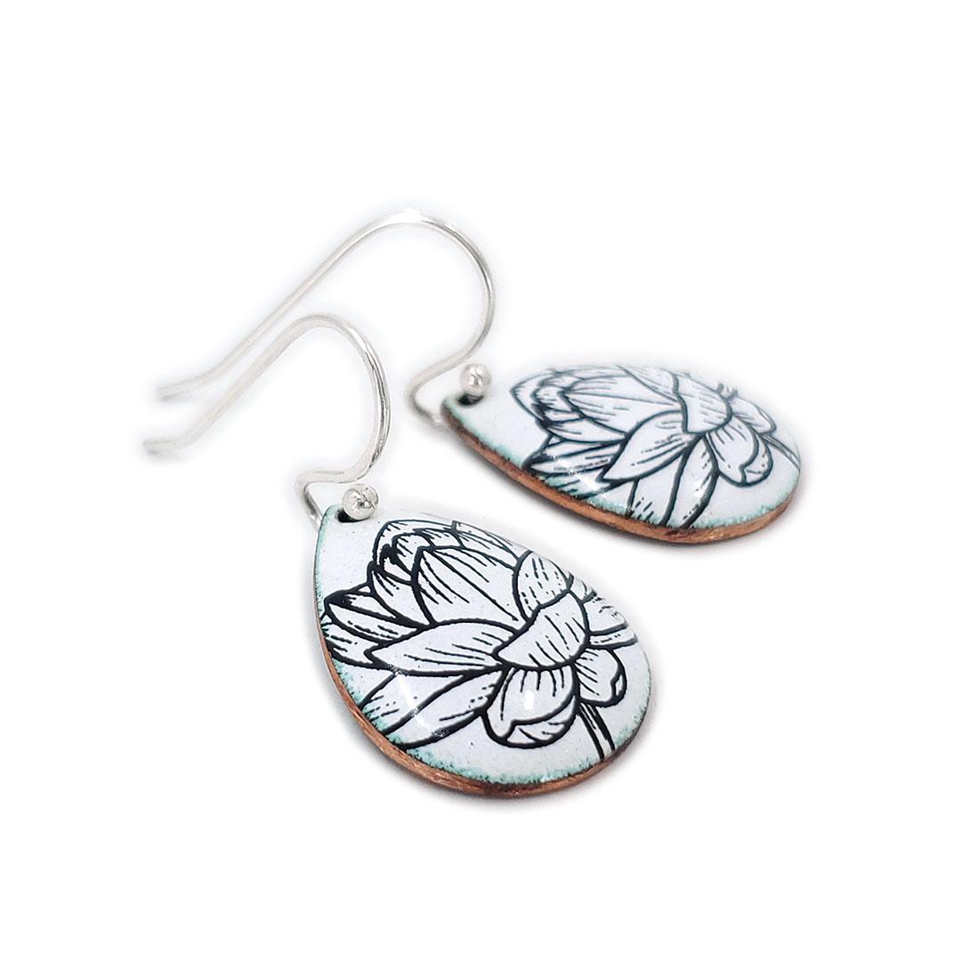 Earrings - Lotus Small Teardrop (White) by Magpie Mouse Studios