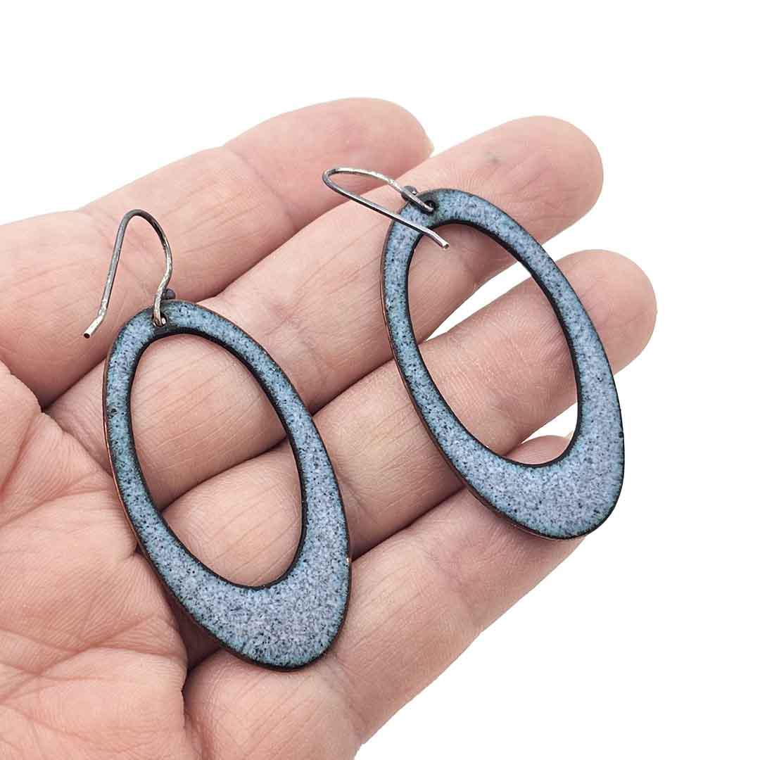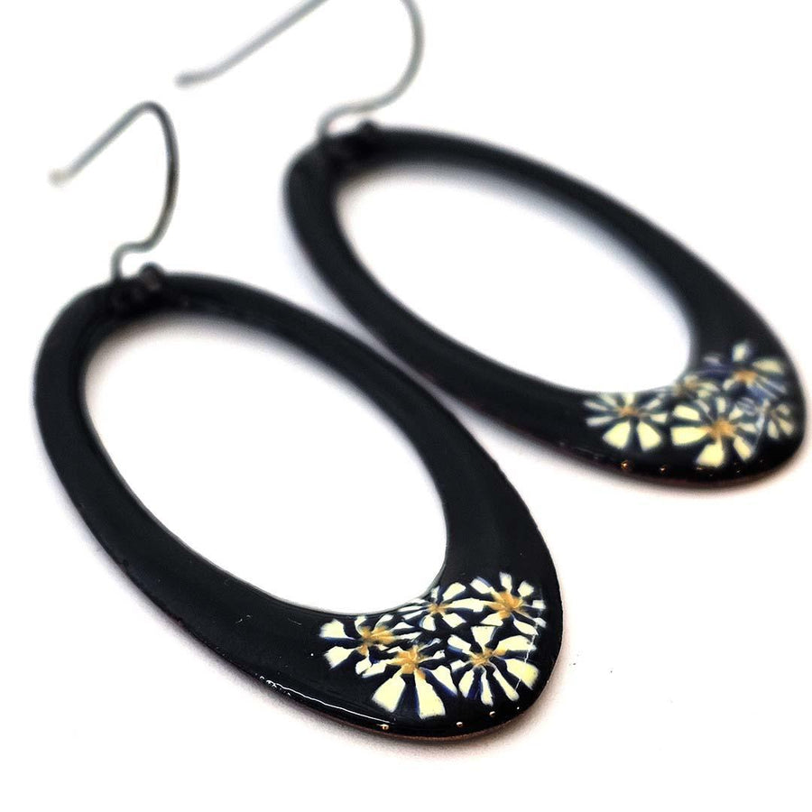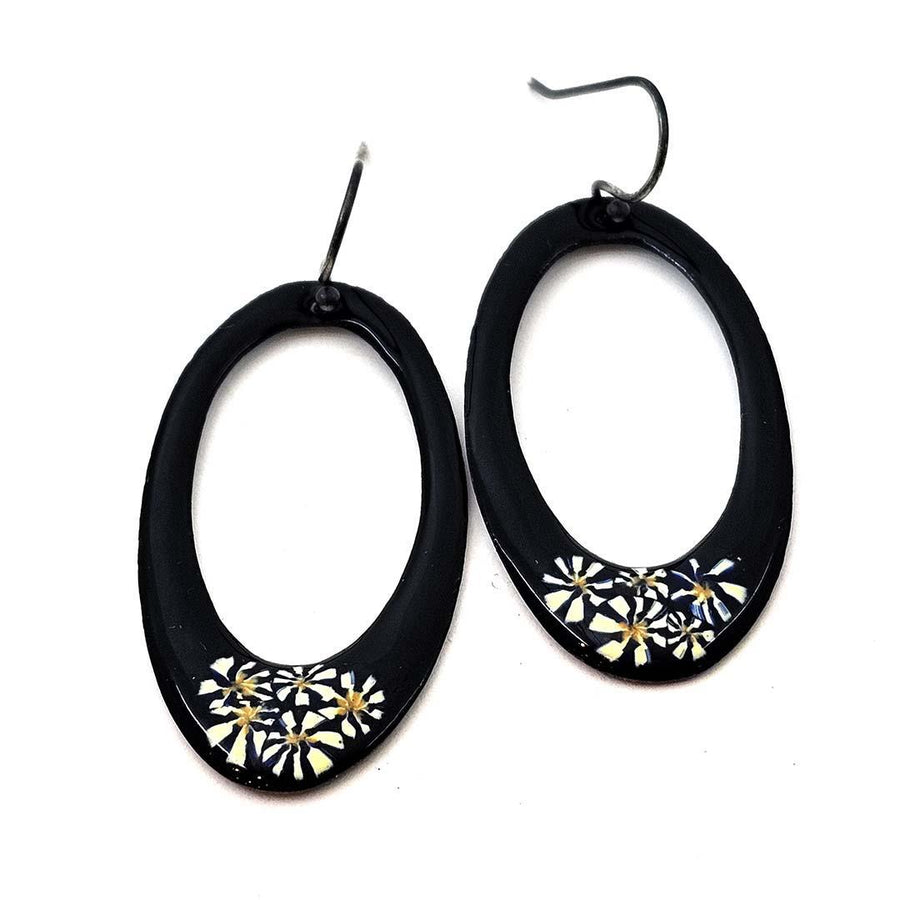 Earrings - Open Oval (Black Daisies) by Magpie Mouse Studios