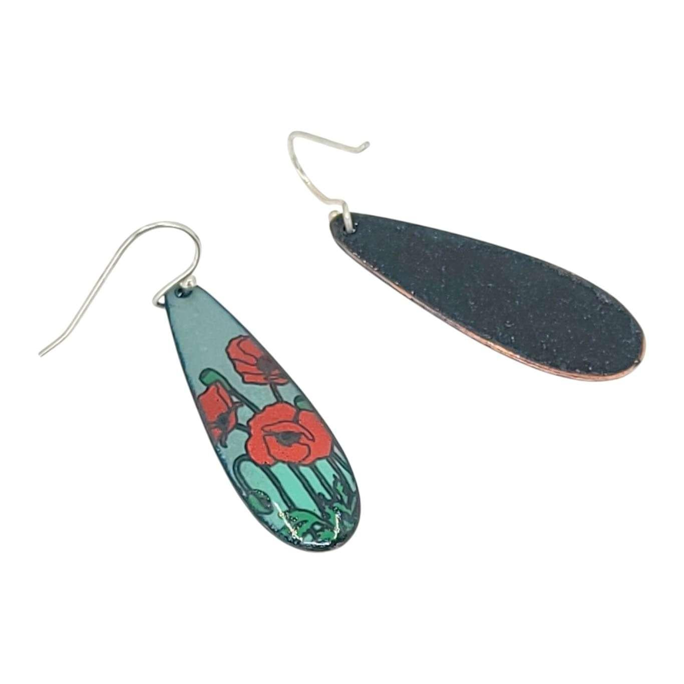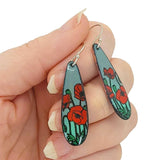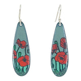Earrings - Long Teardrop (Poppies on Gray Turquoise) by Magpie Mouse Studios