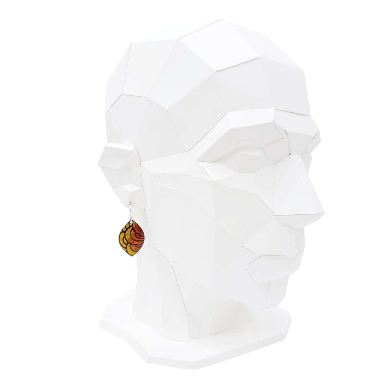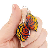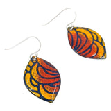 Earrings - Wide Marquise (Red Yellow Petals) by Magpie Mouse Studios