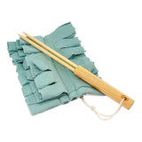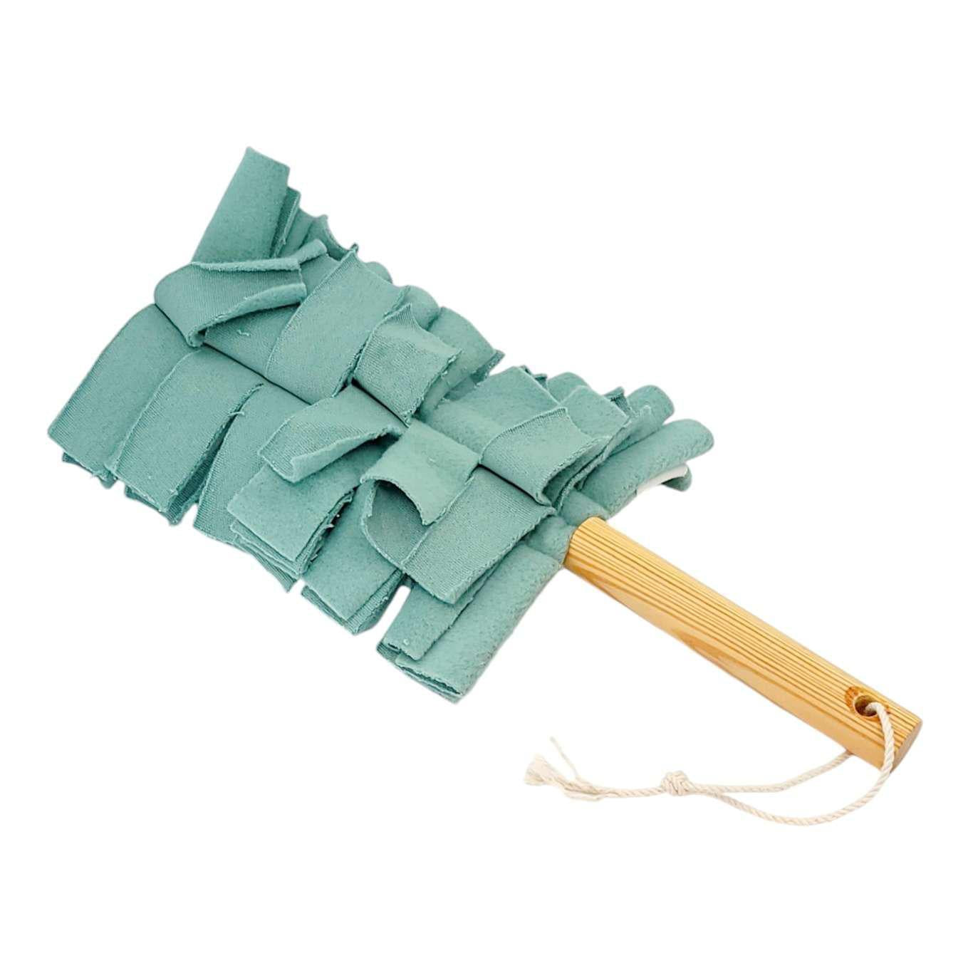 - Washable cotton duster head with handmade wood handle and cotton hanging loop