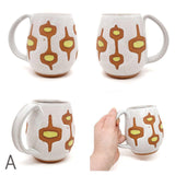 MidMod Mugs! With a mid-century modern design, these white and yellow mugs are wonderfully functional with a vintage flair.