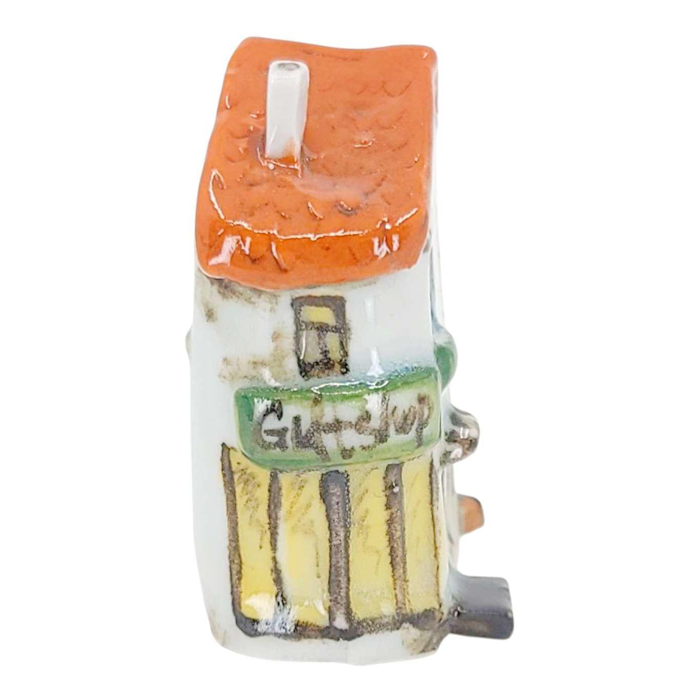 Collectible - Tiny House - Giftshop (White Walls, Orange Roof, Green Door) by Mist Ceramics