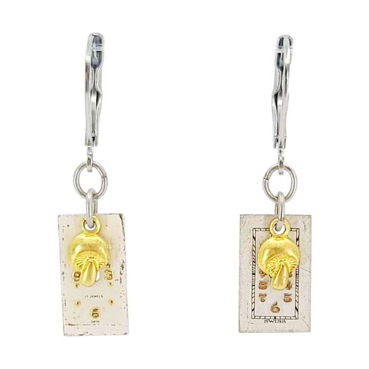 Earrings - Mushrooms on Watch Faces (Stainless Steel) by Christine Stoll
