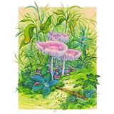 This print features little houses nestled under mushrooms, dewdrops, and a ladybug.