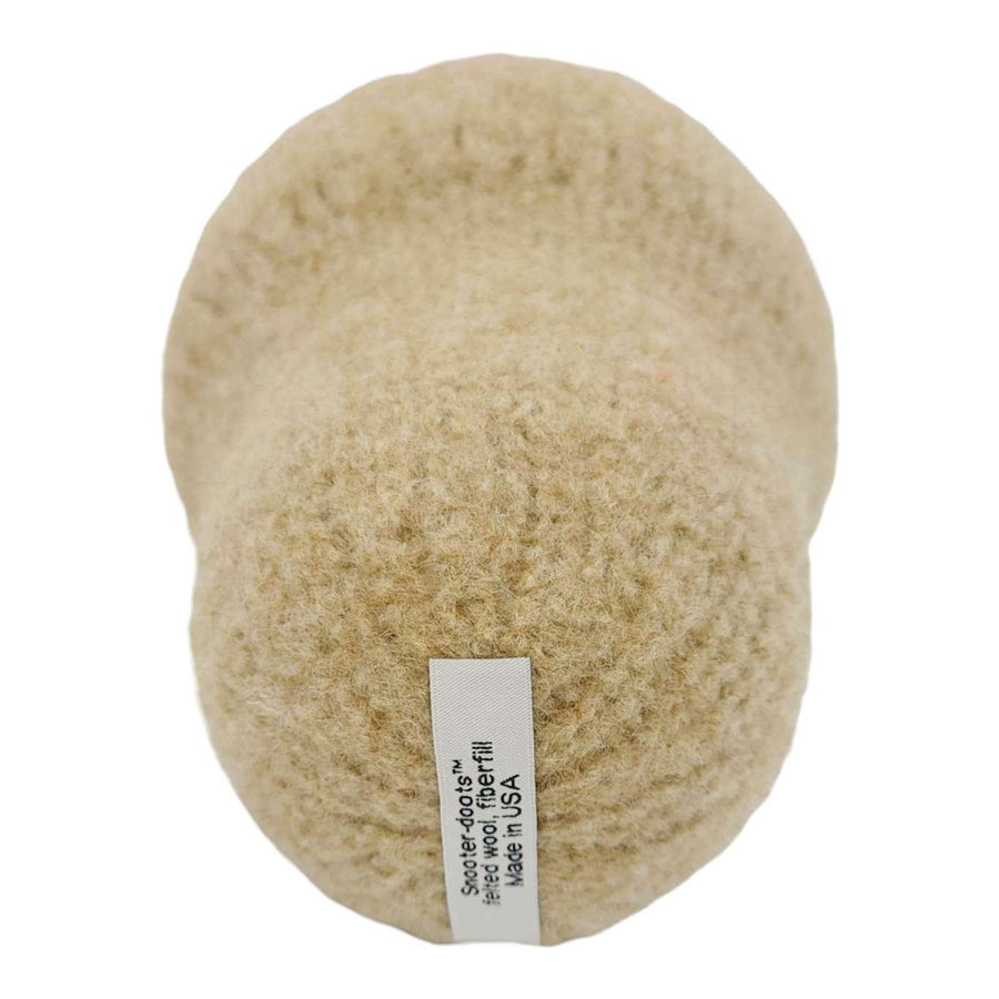 Hand-knit to about 3x its finished size, Mama puts the 100% wool form into a hot soapy washer to shrink and "felt" the knit fabric down to just the right size then stuffs it firmly with new fiberfill. Final details and signature 'Doot eyes are added by needle felting, and a Snooter-doot is born!