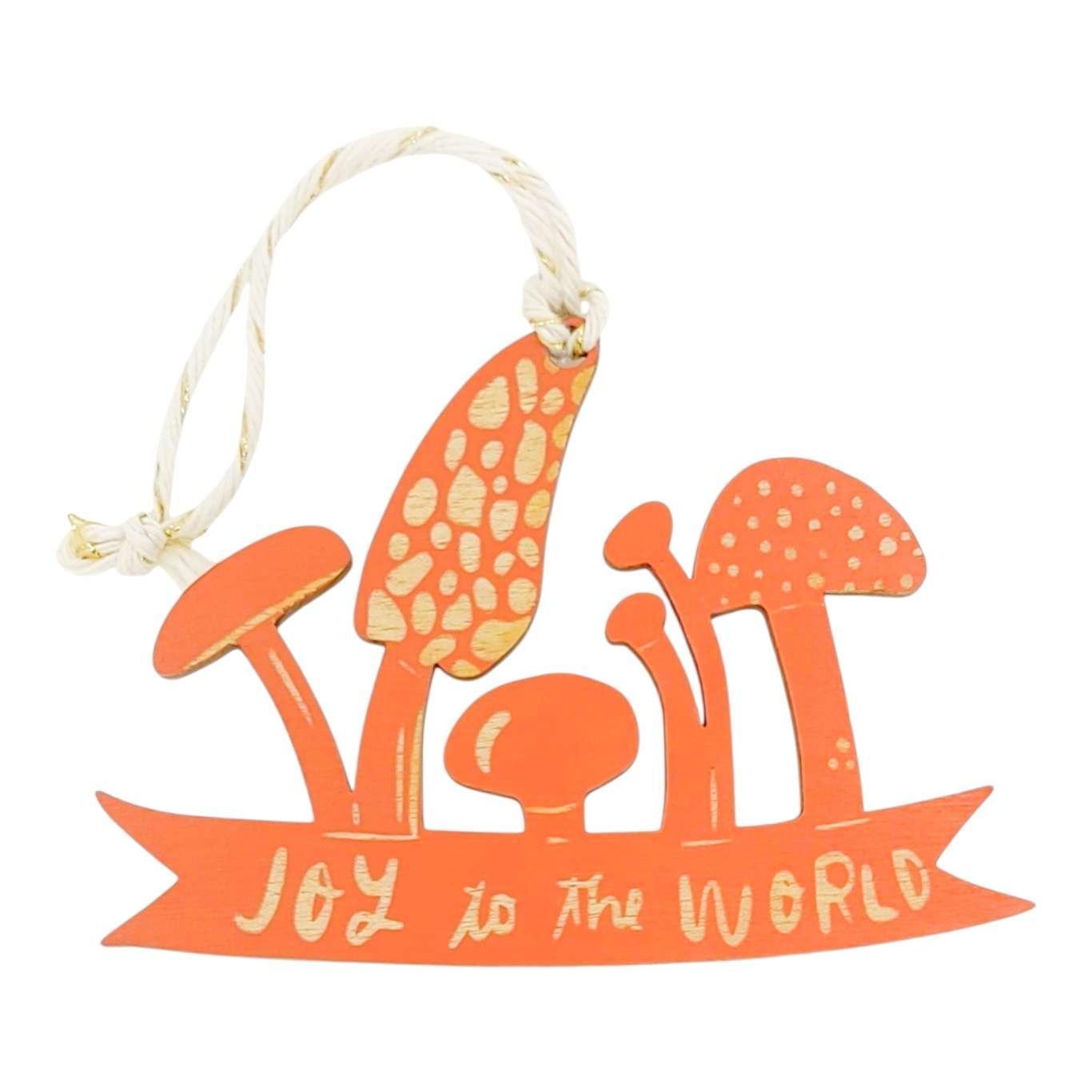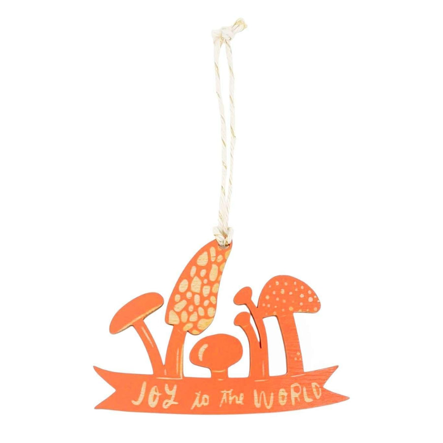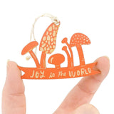Wooden Ornament - Small - Joy to the World Mushrooms (Orange) by SnowMade