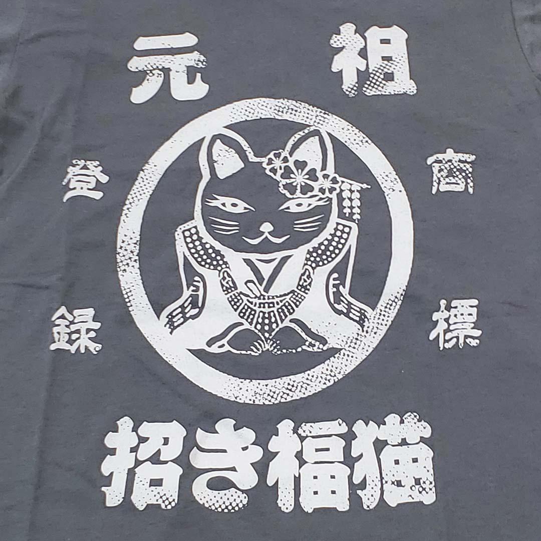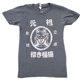 NM2192M $32 - M - Gray Lucky Cat Fitted Crew Neck Adult Tee