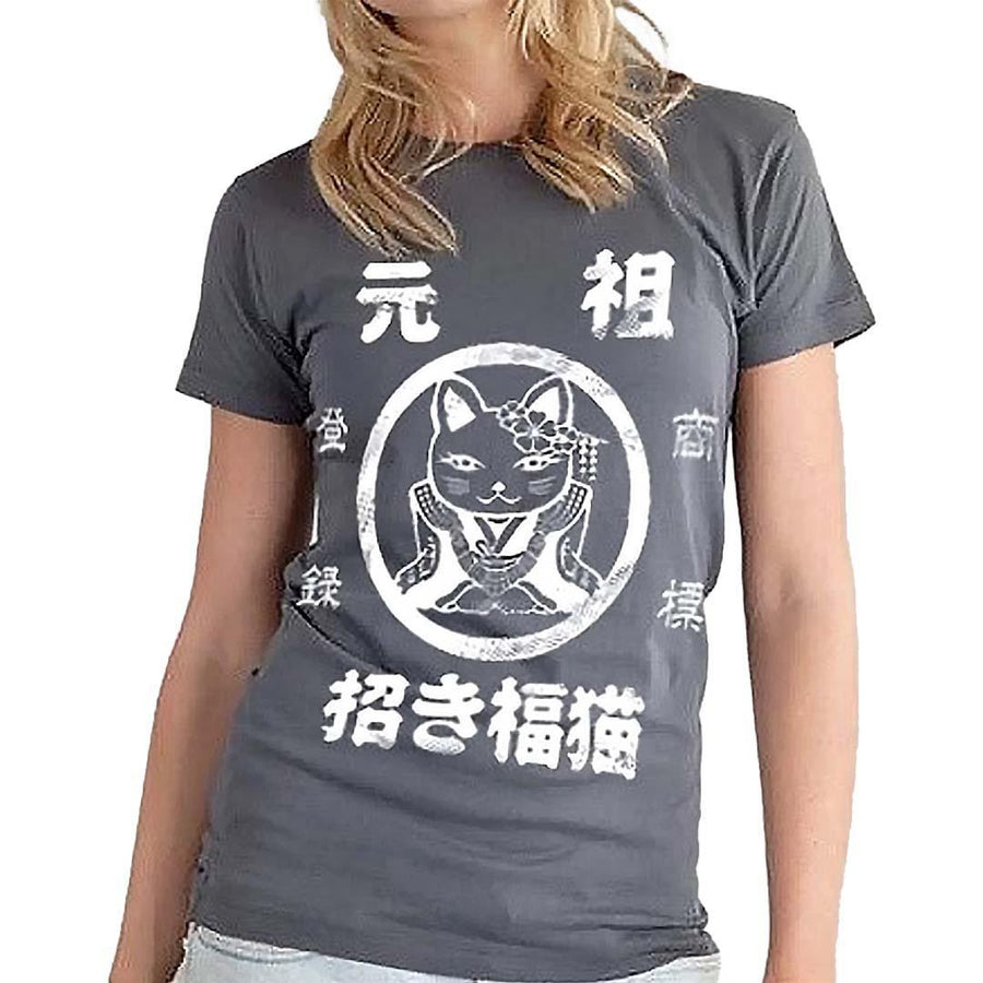 NM2193L $32 - L - Gray Lucky Cat Fitted Crew Neck Adult Tee