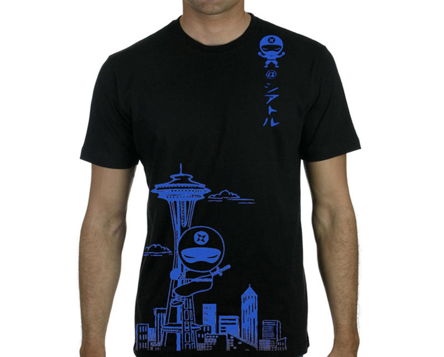 A stealthy ninja climbs the space needle on this cool, comfortable shirt!
