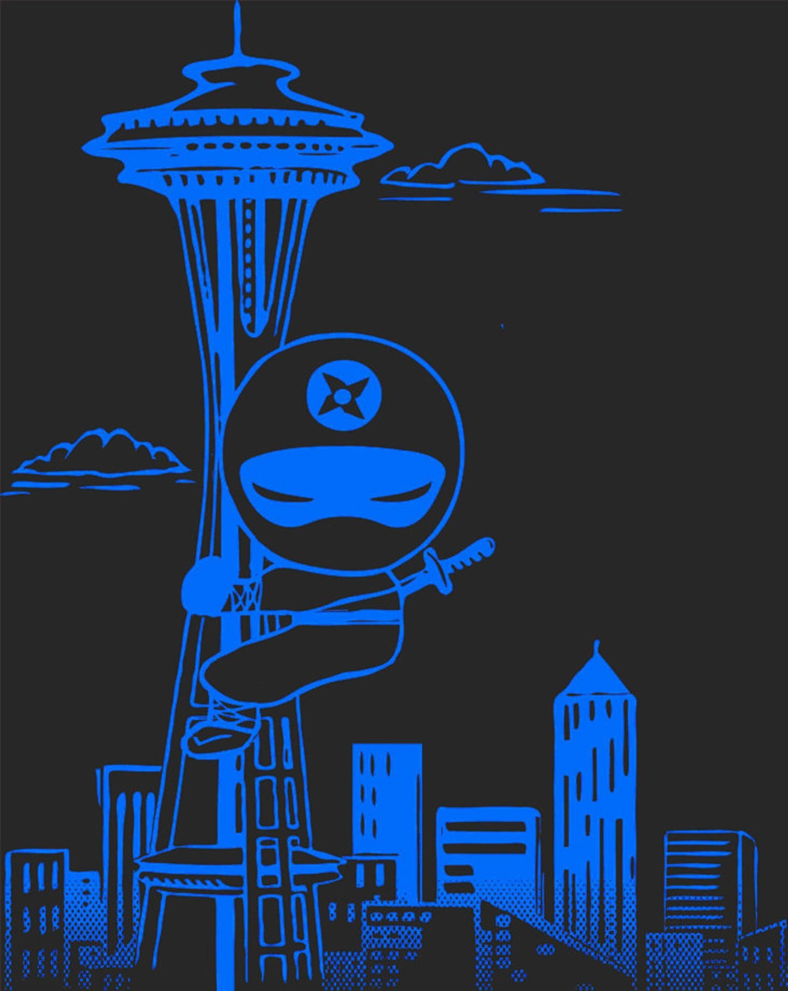 Adult Tee - Seattle Ninja Blue on Black (S - XL) by Namu