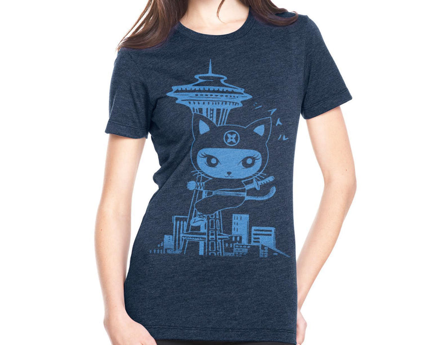 Adult Tee - Seattle Ninja Kitty Blue Fitted Crew Neck by Namu