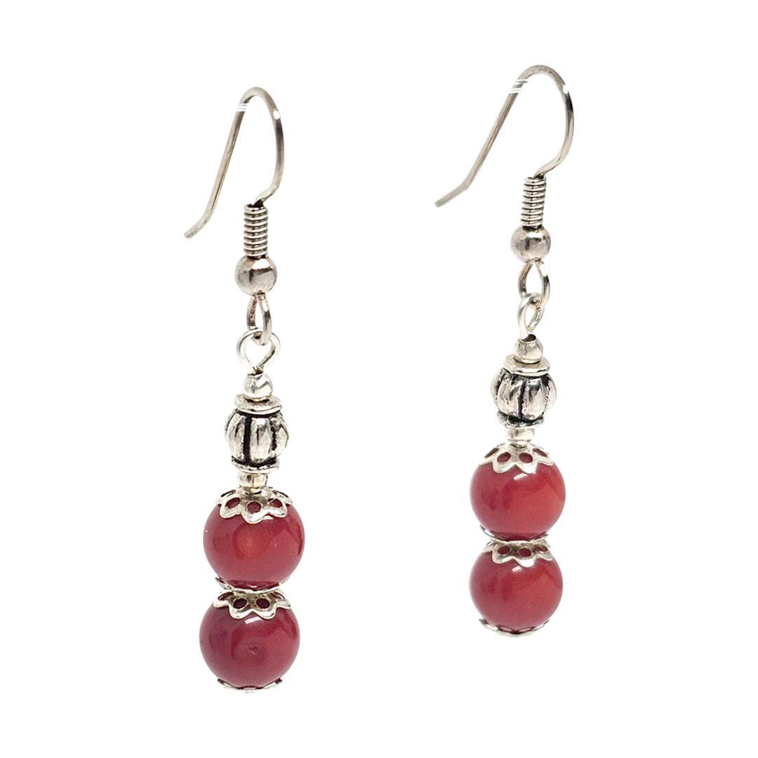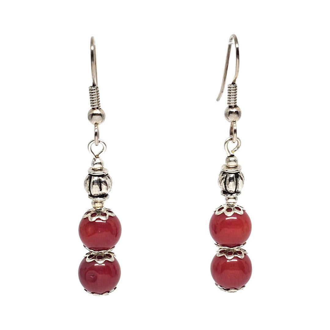 Earrings - Orange Topaz Glass Beads Silver plate short by Tiny Aloha