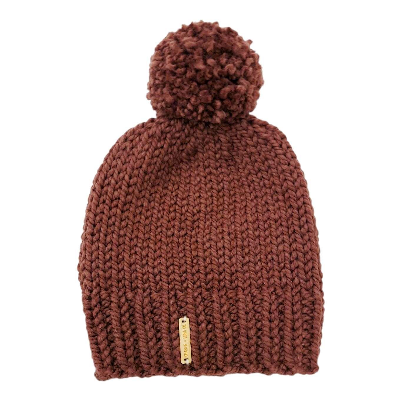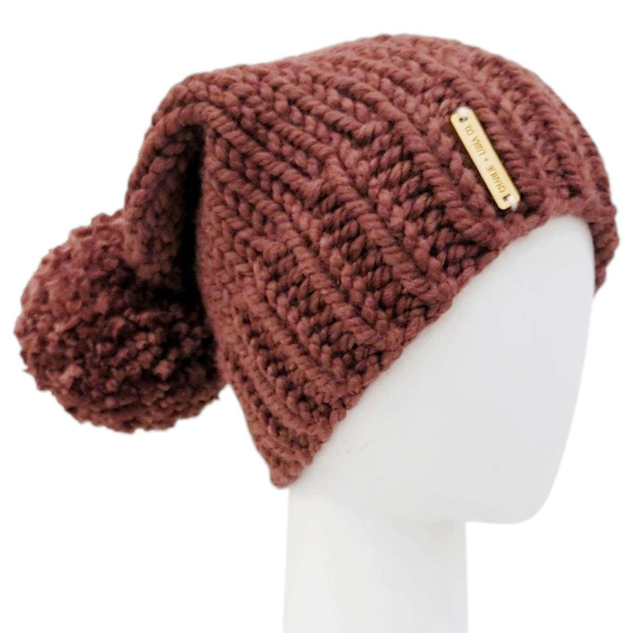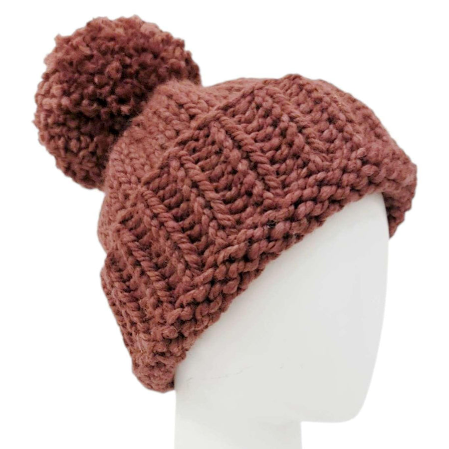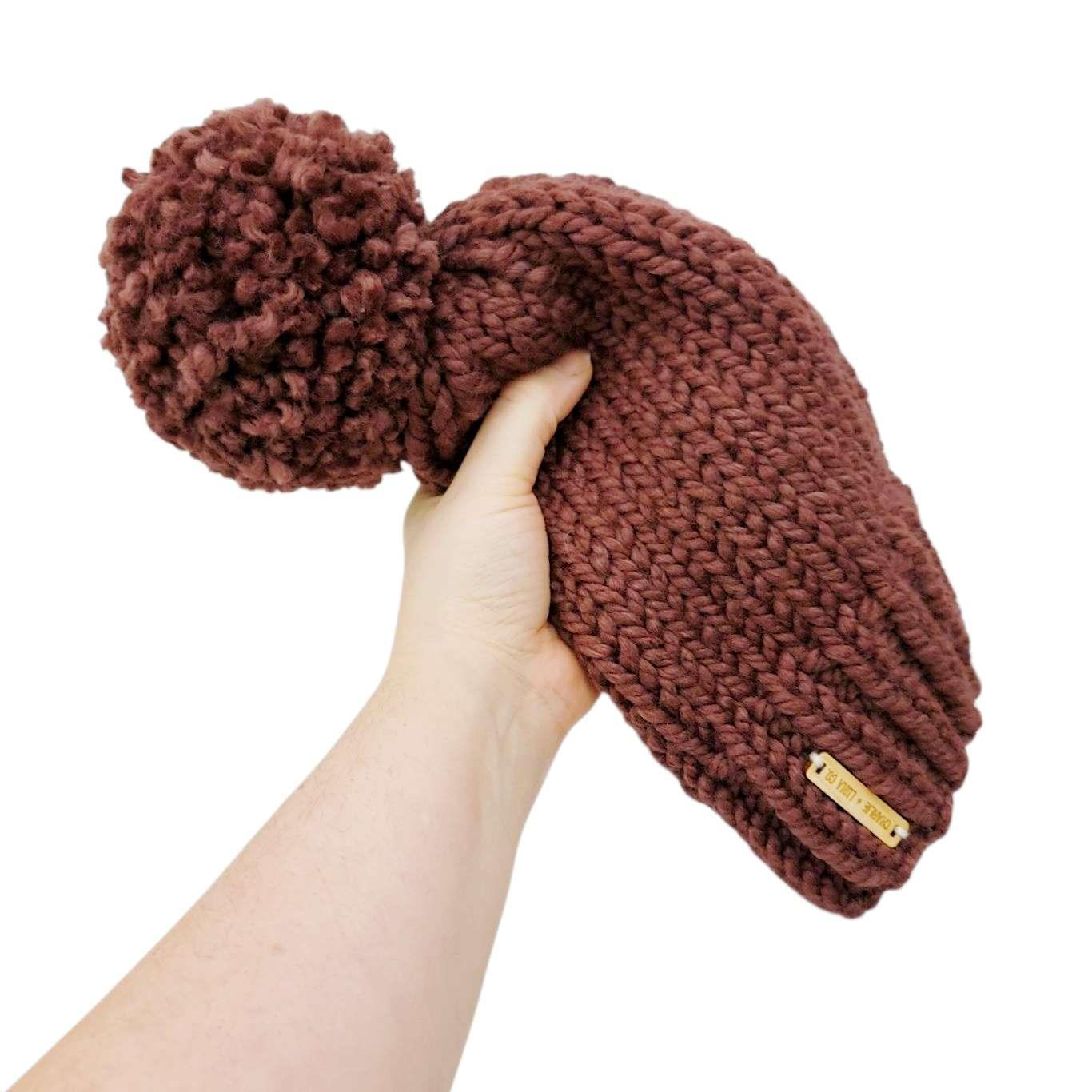 This classic slouchy dusty maroon beanie is sure to keep you toasty warm in style! Knit by hand from high-quality chunky yarn and topped with an adorable handcrafted pompom, these trendy hats add a fun, casual touch to any cold-weather outfit.