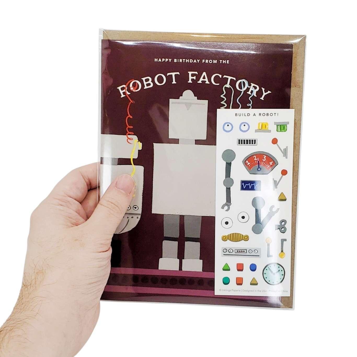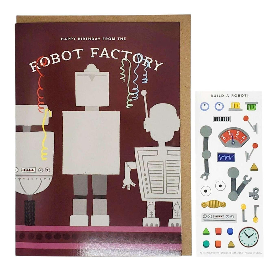 Card - Birthday - Robot Factory Sticker Scene by Inklings Paperie