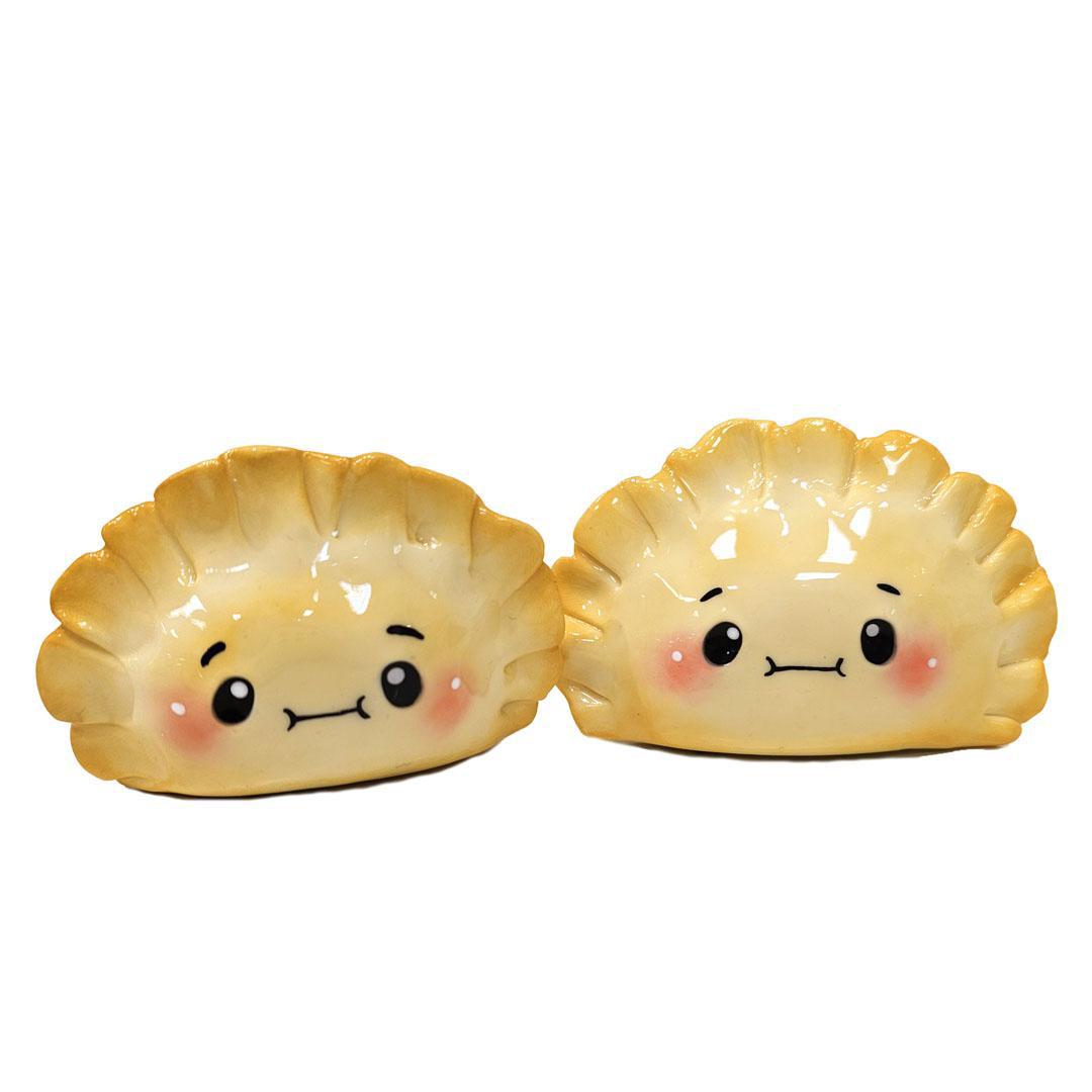 - Glossy golden dumpling with hand-painted facial details