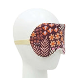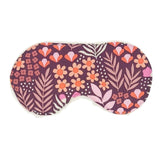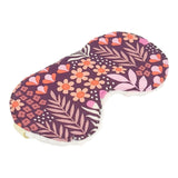 A pink and orange floral design on a maroon background adorns this comfy cotton sleep mask with a super-soft cream sherpa backing.