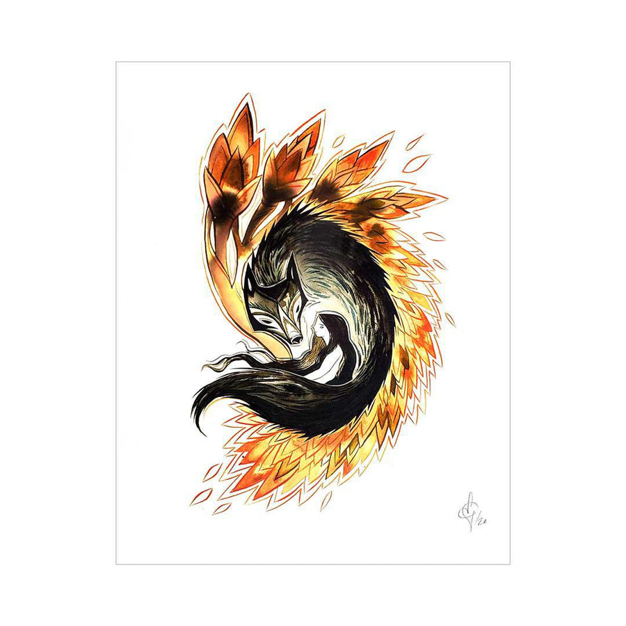 OF117 $25 - Feral Wolf and Woman 8.5x11 Art Print