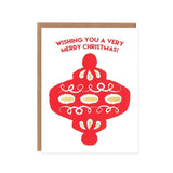 A card and an ornament! This card includes a pop-out red ornament as well as a small ribbon for quick and easy assembly!